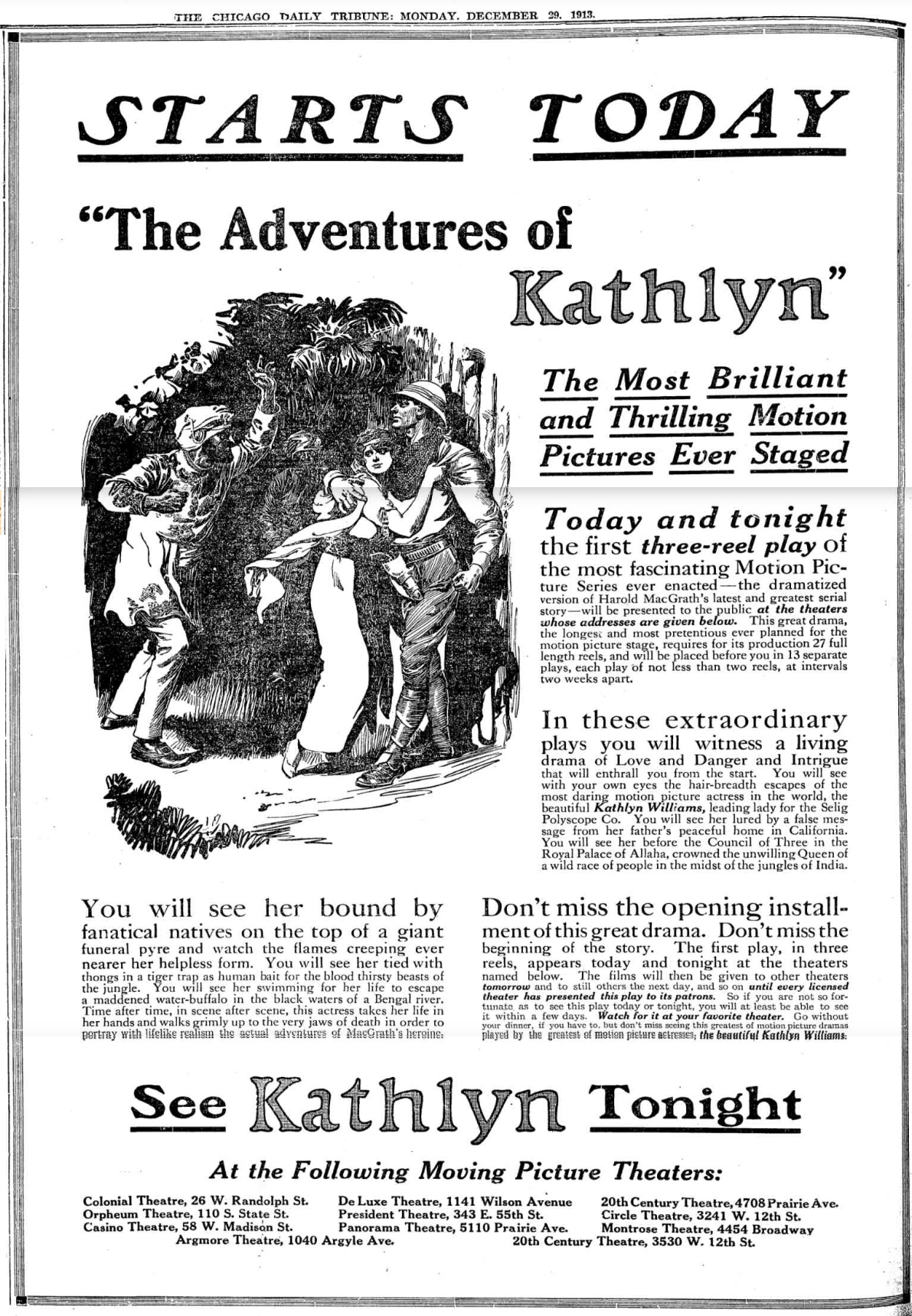 — Advertising poster for The Adventures of Kathlyn
