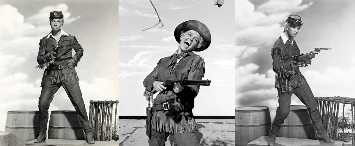 This is probably the most famous movie featuring Calamity. Which is kind of odd, considering that this happens to be a musical and she is played here by Doris Day. Although it’s understandable why Day called this her favorite movie. Here she is allowed to behave as un-ladylike as she wants, very often with hilarious results. She nevertheless stays cute, despite portraying Calamity as a bit of a klutz who has no idea how a woman should behave or how to get a man. It is a very strange entry indeed in the CJ-filmography. From a modern perspective, there is a recognizable queer undertone running through the movie. Early on, there’s a female impersonator singing on stage; Wild Bill (played by Howard Keel) loses a bet and must appear dressed as a squaw; and not least, Day singing the famous song Secret Love, with a subtext that at the time, probably only lesbian audience members might have been able to read.