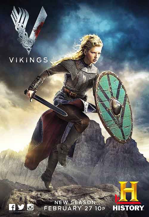 Lagertha, called Ladgerda by Saxo, appears in Book IX, after Ragnar goes to Sweden to avenge the death of his grandfather, Siward. The perpetrator had turned Siward’s female relations into prostitutes; when freed, some, including Lagertha, joined Ragnar’s forces, for personal revenge. Saxo calls Largertha, “a skilled amazon, who, though a maiden, had the courage of a man, and fought in front among the bravest with her hair loose over her shoulders. All marvelled at her matchless deeds, for her locks flying down her back betrayed that she was a woman.” Her exploits caused Ragnar to fall for her, and after some wooing i.e. stabbing her guard-bear – the pair were married. None of the above is mentioned in Vikings, but it covers their later divorce, and her steadfast loyalty, coming to Ragnar’s aid in his greatest need. Her “matchless spirit though a delicate frame” turned the course of a battle; the last we hear, she went home and killed her second husband, because Lagertha “thought it pleasanter to rule without her husband than to share the throne with him.”