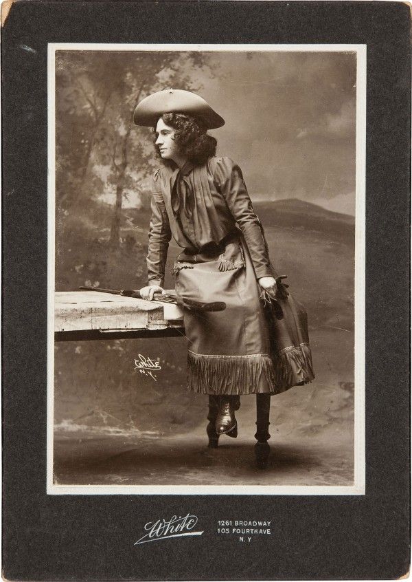 Performances typically opened with a parade of horse and riders from many nations, including the military and Indians. It proceeded through a series of re-enactments, such as of the Pony Express or an attack on a wagon train, and also included displays of skills related to life on the frontier, including trick riding, roping and marksmanship. While Oakley was the best-known woman to take part in the shows, she wasn’t the only one. In 1886, another trick shooter, Lillian Smith, also joined Buffalo Bill while still a teenager, and by most accounts, there was a fractious relationship between the two, with them having markedly different personalities and styles. Another Western icon, Calamity Jane, began appearing as a storyteller in 1893. Records indicate that Buffalo Bill paid the women the same as their male equivalents, though Oakley earned more than anyone save Bill himself.