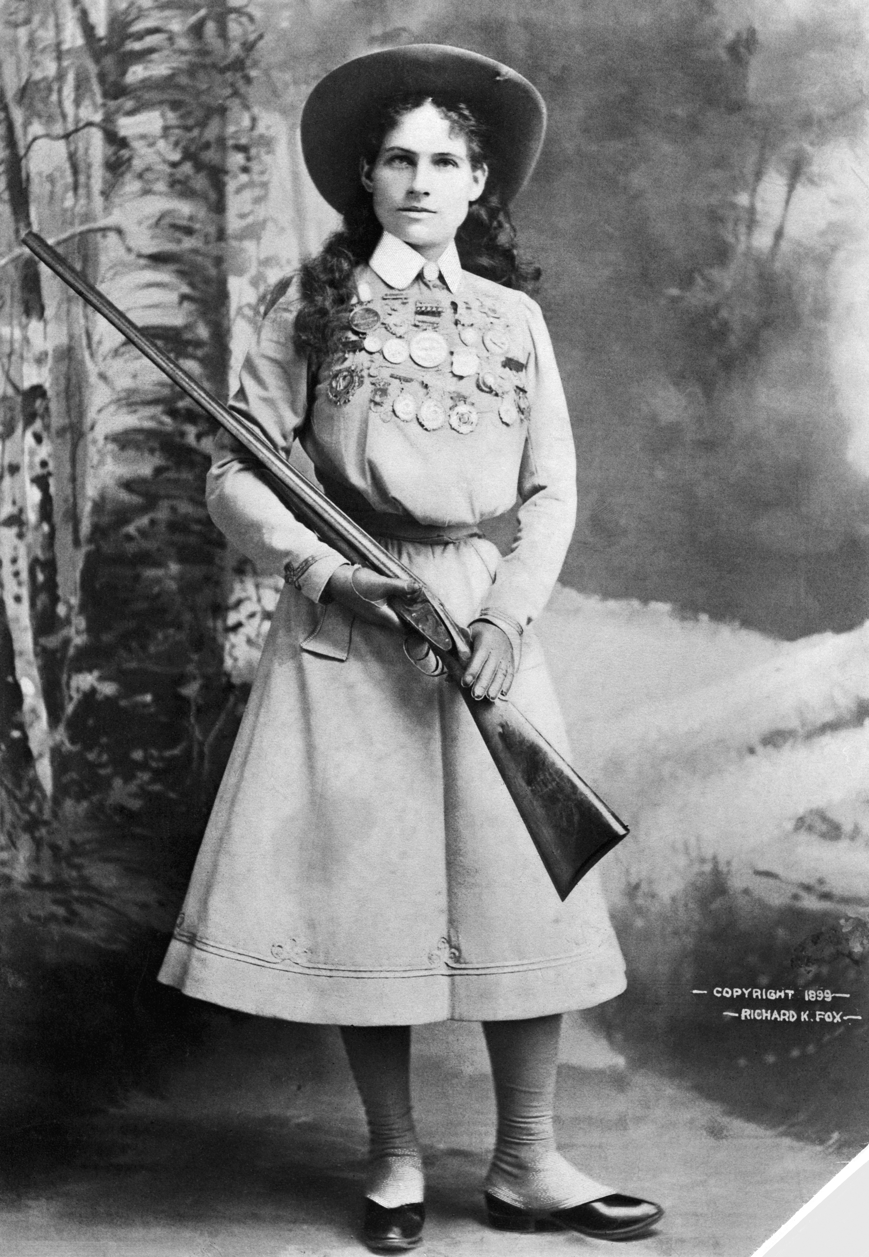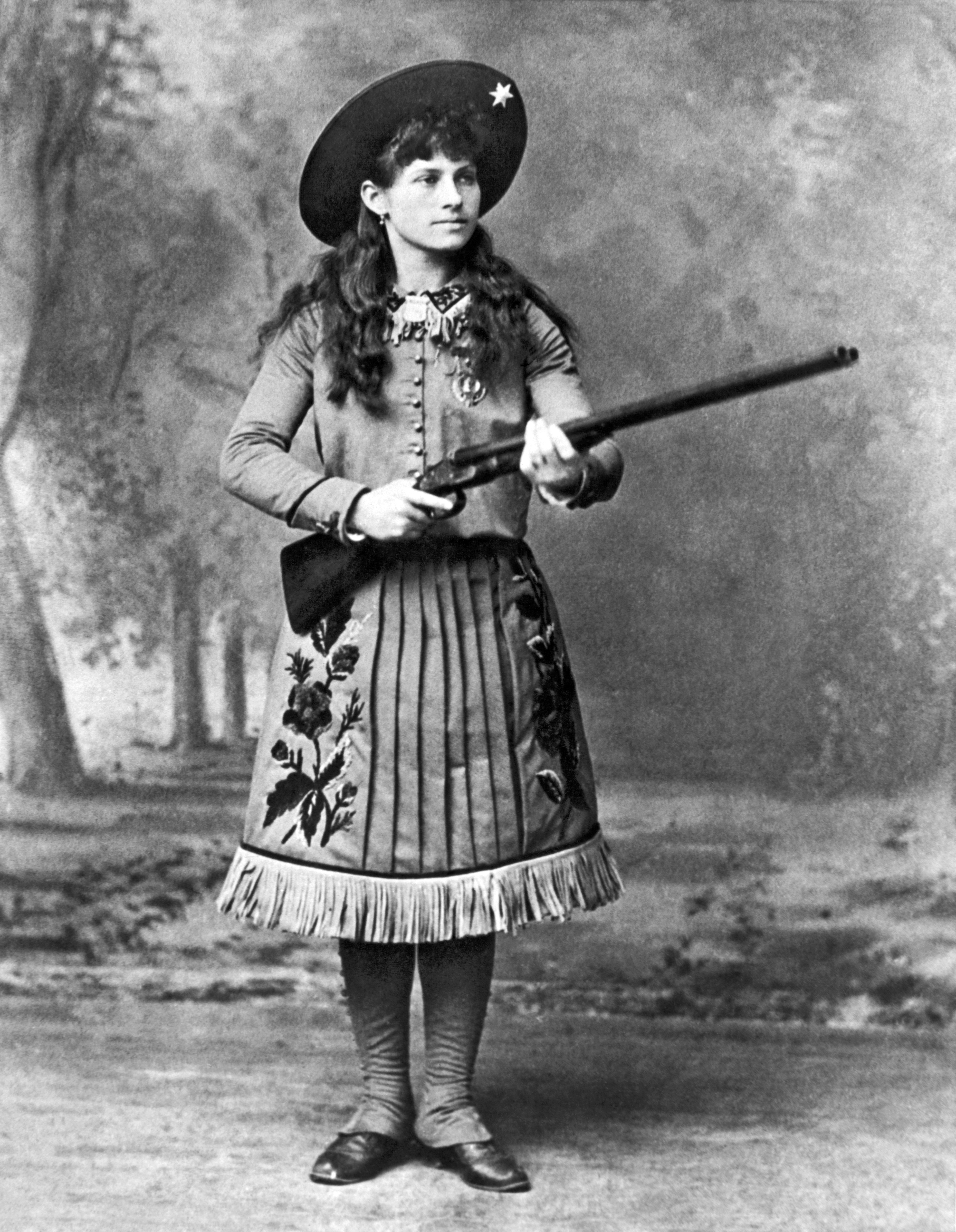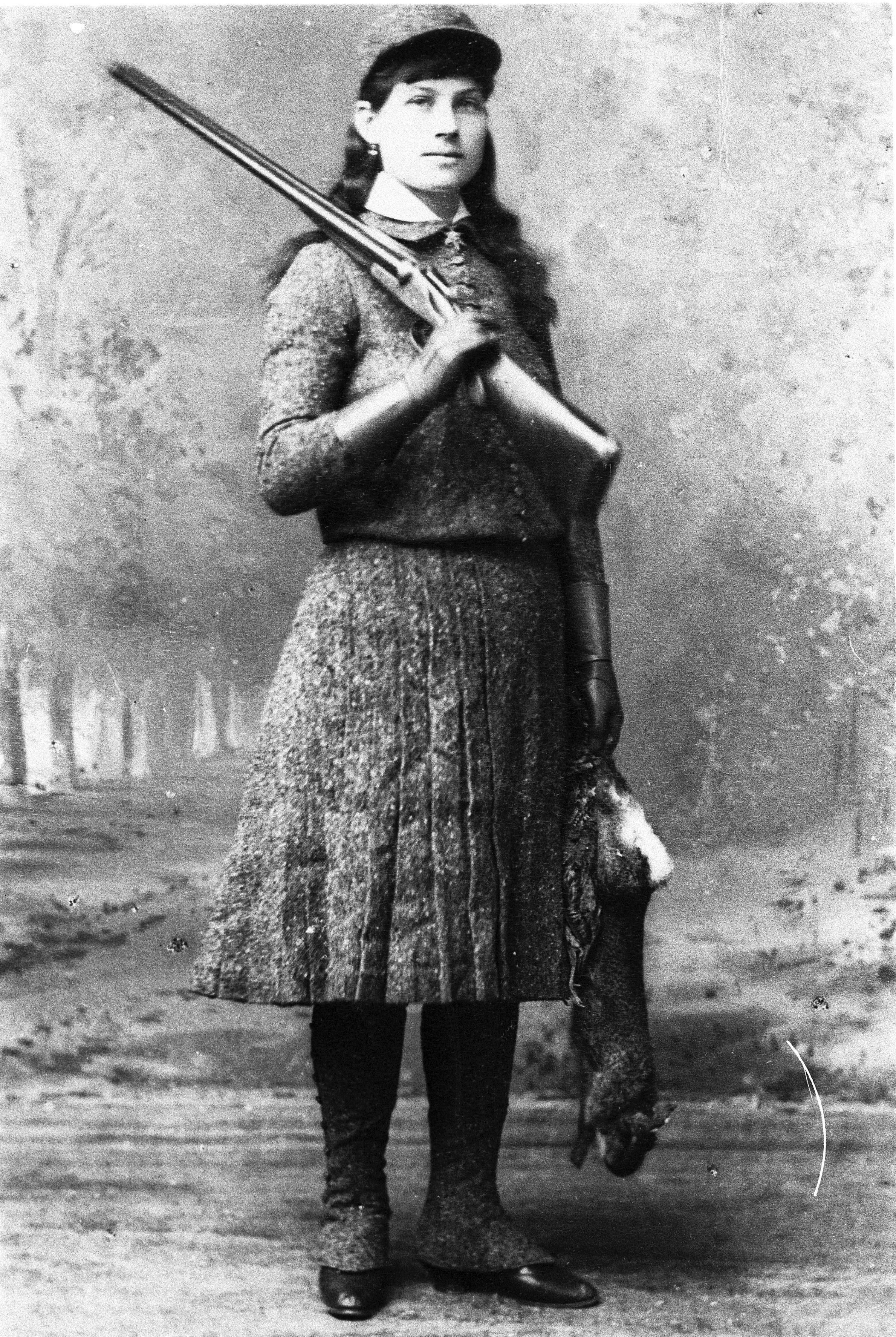Born Phoebe Ann Mosey in 1860, she seems to have had a pretty crappy childhood. Her father died when she was five, and Annie became a ward of Darke County, Ohio, in 1870. From there, she was fostered out to a family, who apparently treated her as little more than a slave. She ran away from them a couple of years later, eventually returning to live with her mother, who had remarried, at age 15. But by this point, she was already well-versed in guns, having been hunting with them since she was eight. Her skill with them gradually became known through the region, and led to the shooting match against Frank Butler which propelled her towards greater fame, and a career as a professional markswoman.