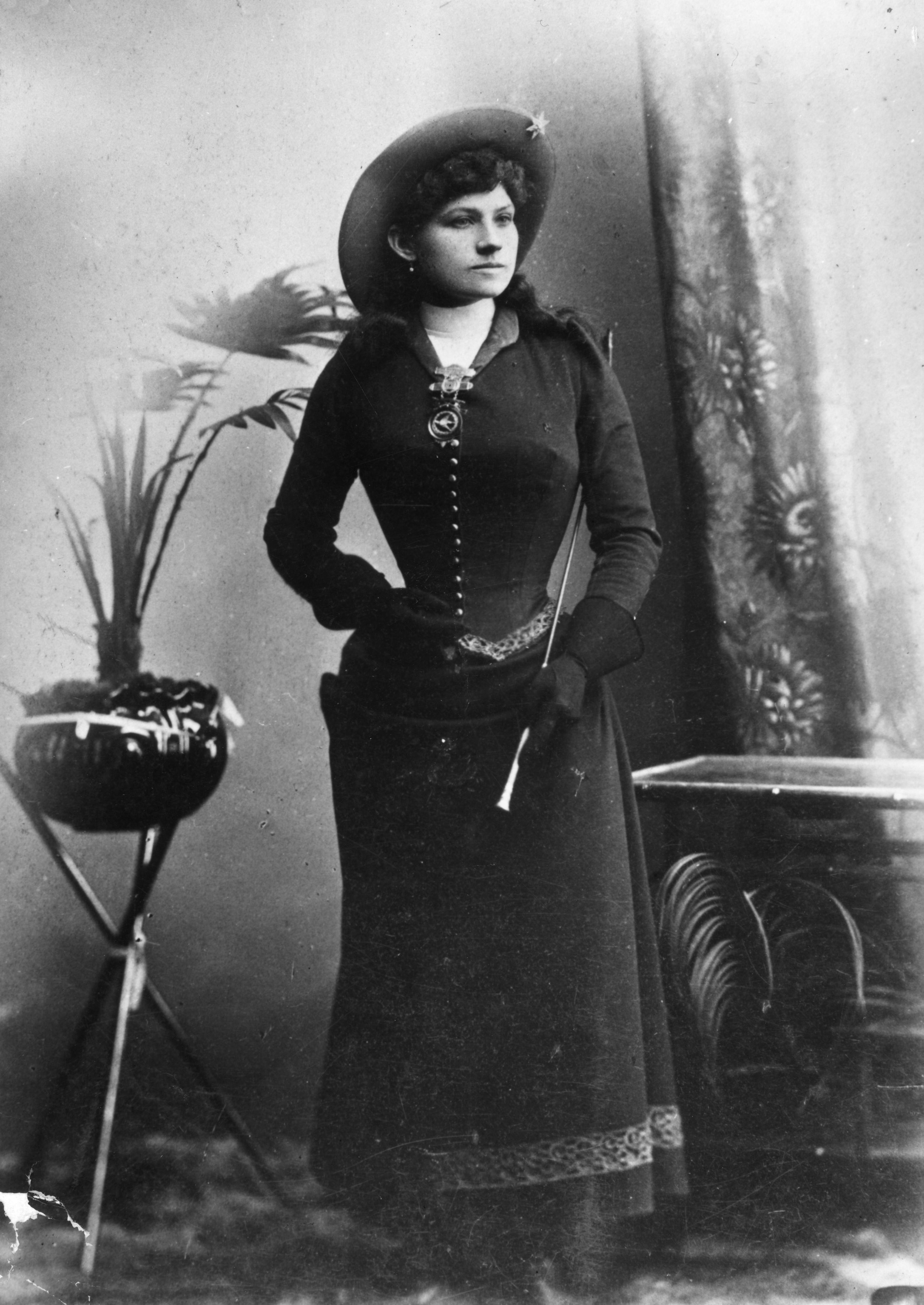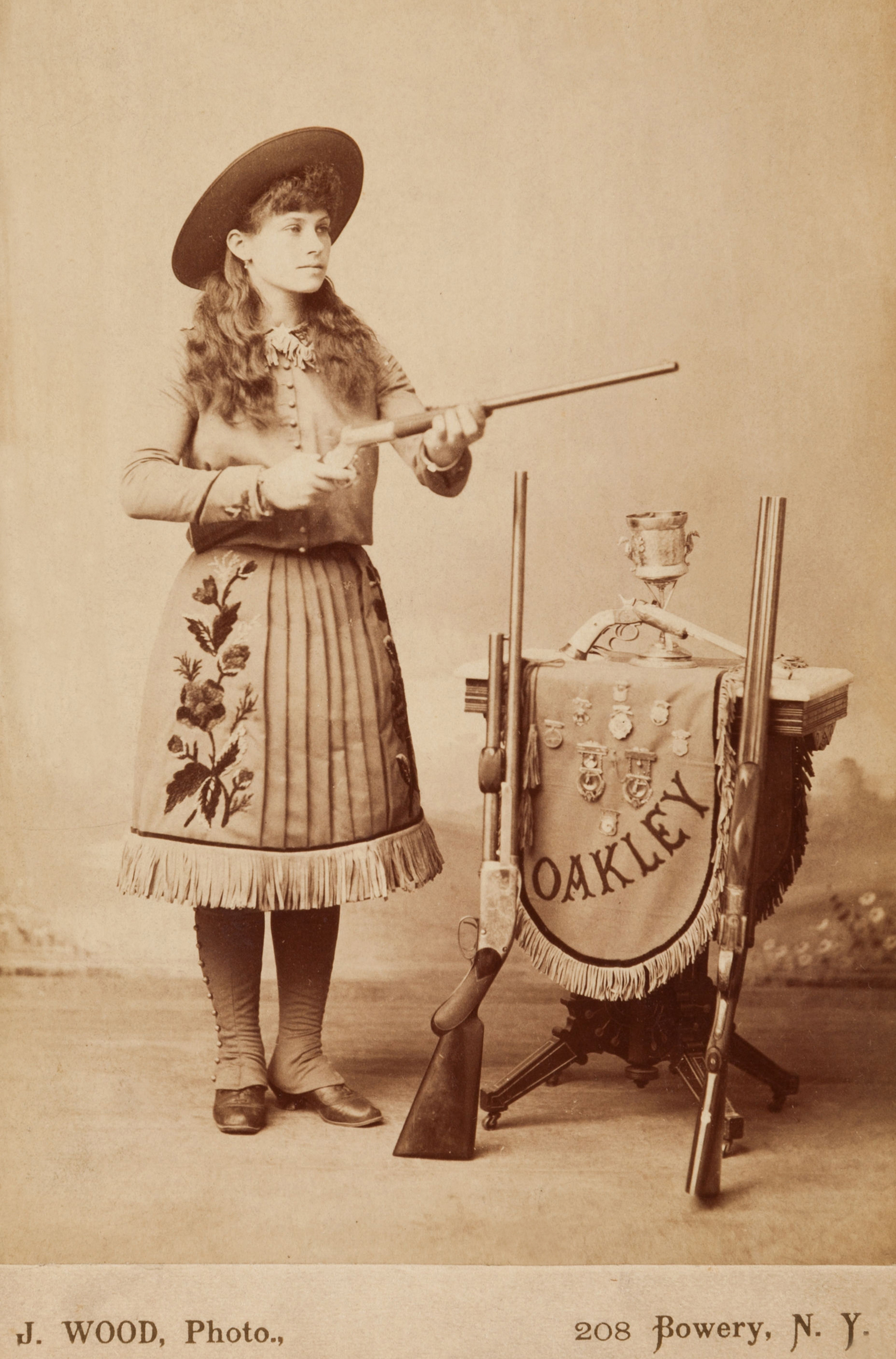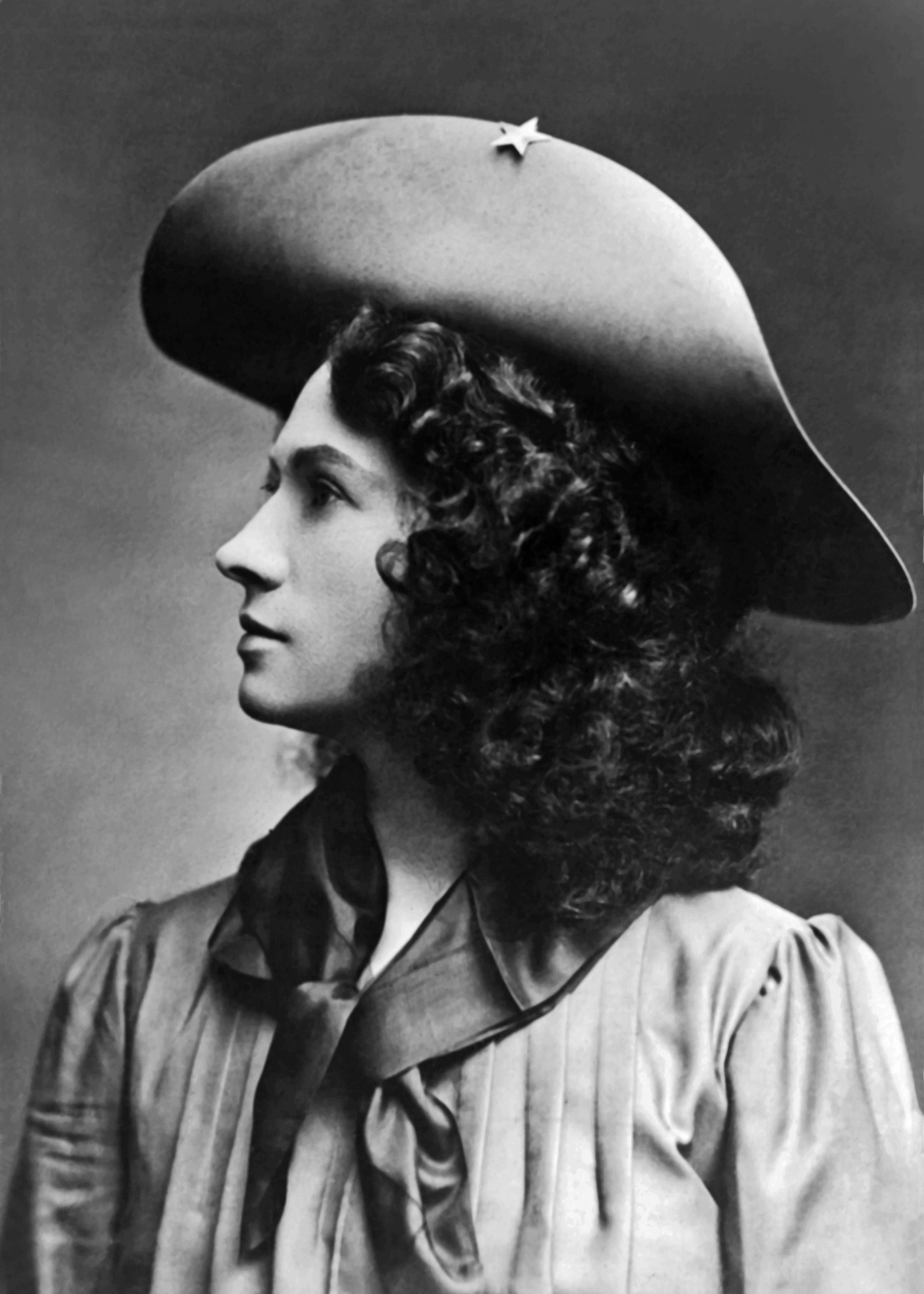 Born Phoebe Ann Mosey in 1860, she seems to have had a pretty crappy childhood. Her father died when she was five, and Annie became a ward of Darke County, Ohio, in 1870. From there, she was fostered out to a family, who apparently treated her as little more than a slave. She ran away from them a couple of years later, eventually returning to live with her mother, who had remarried, at age 15. But by this point, she was already well-versed in guns, having been hunting with them since she was eight. Her skill with them gradually became known through the region, and led to the shooting match against Frank Butler which propelled her towards greater fame, and a career as a professional markswoman.