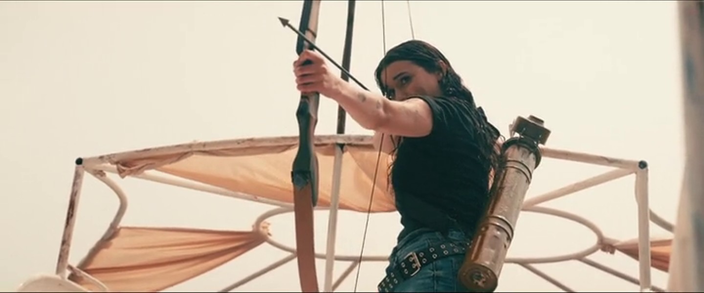I’m inclined to look kindly on this, because I suspect it was a local production, filmed here in Arizona. While the end credits are silent on the topic, there are enough saguaro cacti about, to make it likely the faux Western town and other locations used, were somewhere near me. I recognize an actor or two as well. Unfortunately, it’s not exactly a film I would hold up as a shining example of quality Arizona cinema. While clearly set in the Old West, the movie is stuffed with anachronisms, from haircuts through a terrible British accent to glasses. It consequently never succeeds in establishing a convincing sense of period. This is a bit of a shame, since the Western horror action heroine isn’t one we see often.