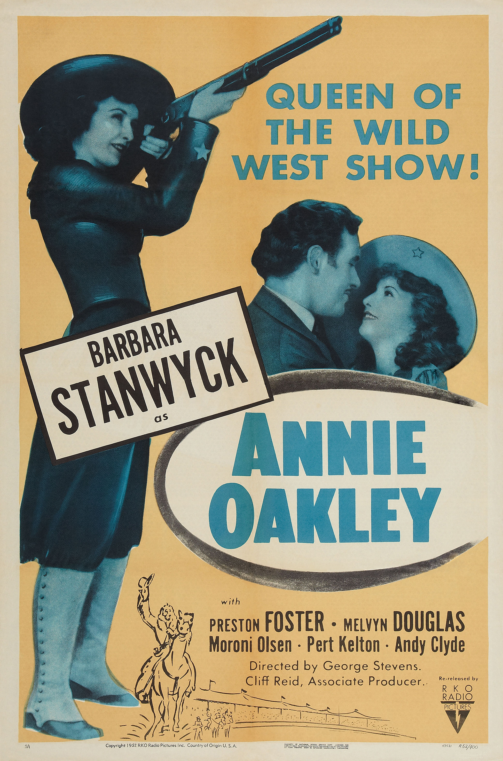 While not exactly an accurate retelling of the life of noted sure-shot Annie Oakley, this is breezily entertaining. Indeed, you can make a case for this being one of the earliest “girls with guns” films to come out in the talking pictures era. There’s no denying Oakley (Stanwyck) qualifies here. The first time we see her, she’d delivering a load of game birds – all shot through the head to avoid damaging the flesh – to her wholesaler. When barnstorming sharpshooter Toby Walker (Foster) blows into town, Annie ends up in a match with him, which she ends up throwing, due in part to her crush on him. She still gets a job alongside Walker, in the Wild West show run by the renowned ‘Buffalo Bill’ Cody (Olsen) and his partner, Jeff Hogarth (Douglas). But Annie and Toby’s relationship fractures after he accidentally shoots her in the hand, while concealing an injury affecting his sight.